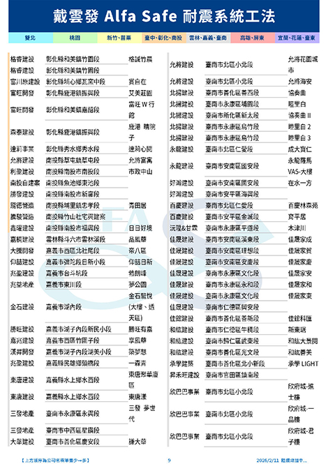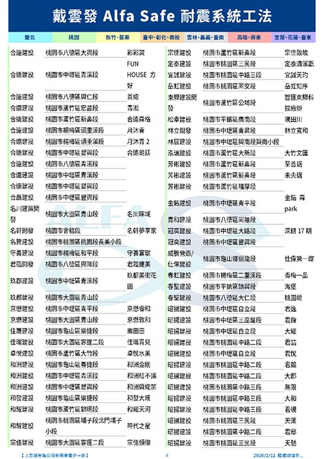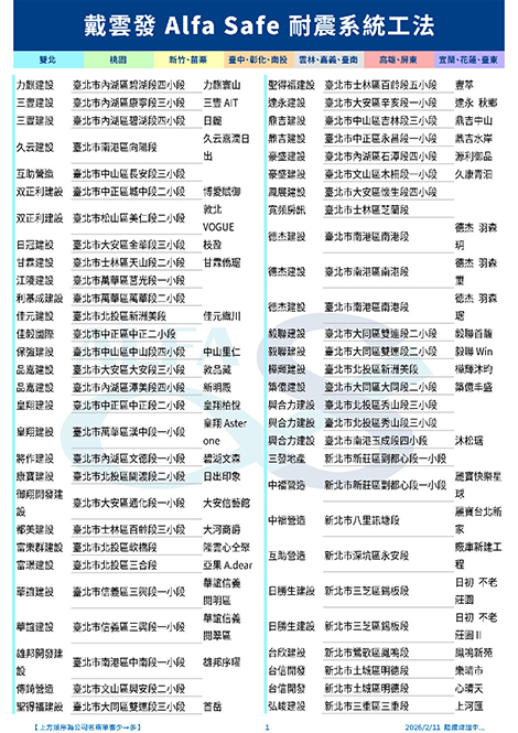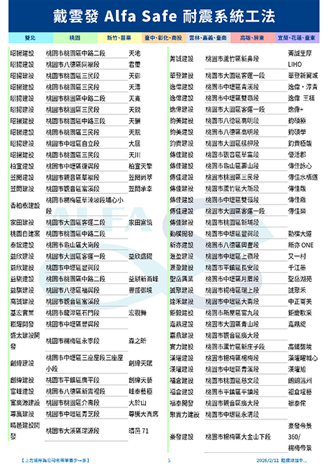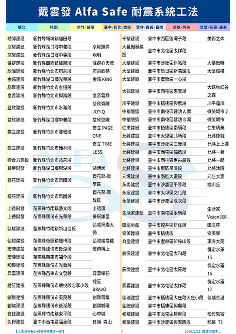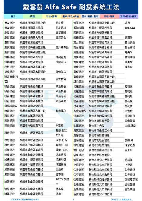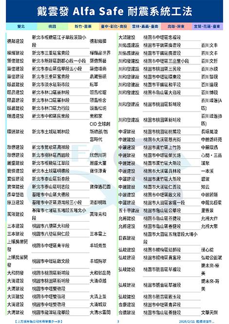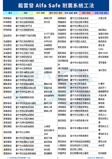 全台採用「Alfa Safe耐震系統工法」建案列表